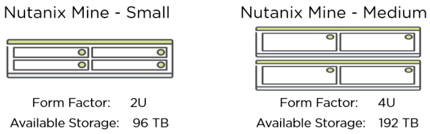 새롭게 라인업에 추가된 Mine은 이른바 2차 스토리지 서비스 플랫폼입니다. 주된 이용 씬은 데이터 보호인 듯 Veeam을 시작으로 CommVault, Veritas 등의 백업 솔루션과 통합되어 원클릭으로 도입이 가능하다고 합니다. 이 Mine은 용량에 따라서 2종류의 사이즈 모델이 있으며 AOS의 Pro 라이선스와 3rd 파티의 백업 제품이 번들되어있다고 합니다.