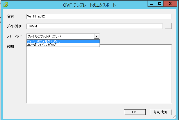 예)C:\> Get-VM -Name TestVM | Export-VApp -Destination “H:\OVA-VM” -Format OVA -Force