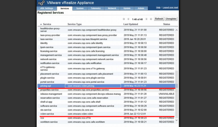 KB의 증상과 동일했으며 에러 메시지 이외에 vRA의 VAMI에 등록되어있던 서비스도 해제되어있었습니다.