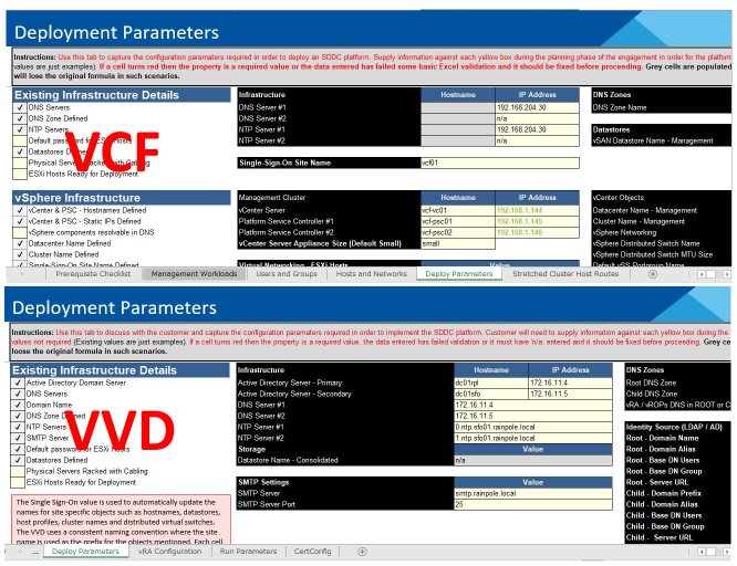 Management Domain 전개용 파라미터를 다운로드합니다. Cloud Builder 전개 시 SKU에서 언급했습니다만, 전개 형태에 따라서 아래의 그림처럼 파라미터가 다르답니다.(솔직히 이 부분은 개선의 여지가 필요하지 않을까 싶습니다)