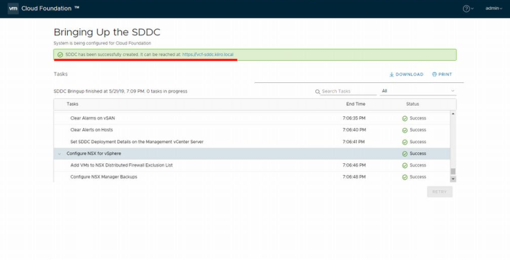 여기까지가 VCF의 첫걸음인 Management Domain의 전개 방법이었습니다. 다음에는 VCF의 관리 인터페이스인 SDDC Manager의 기능에 대해서 간단히 설명하도록 하겠습니다.