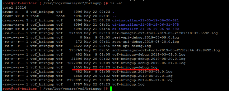 | /var/log/vmware/vcf/bringup/vcf-bringup-debug.log