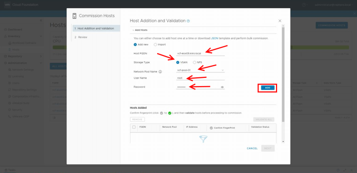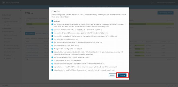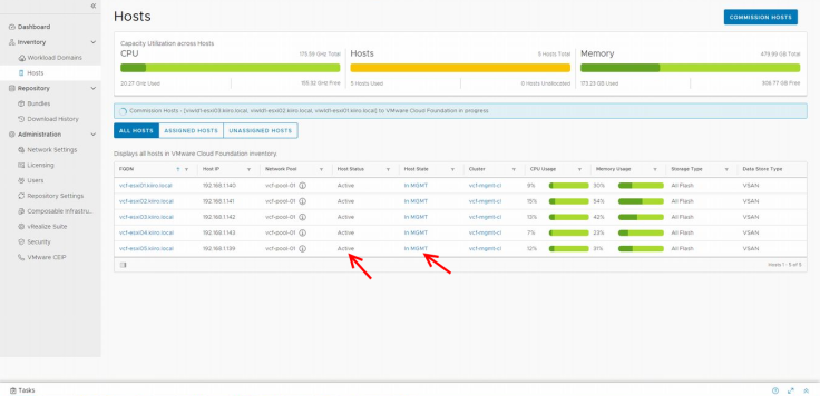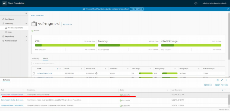 여기까지가 VCF에 호스트를 추가하는 순서였습니다. WLD 작성이나 호스트 추가는 이 순서에 따라서 먼저 VCF에 위탁할 필요가 있으니 VCF 운용에서는 빼놓을 수 없는 순서가 아닐까 싶네요.