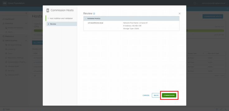 여기까지가 VCF에 호스트를 추가하는 순서였습니다. WLD 작성이나 호스트 추가는 이 순서에 따라서 먼저 VCF에 위탁할 필요가 있으니 VCF 운용에서는 빼놓을 수 없는 순서가 아닐까 싶네요.