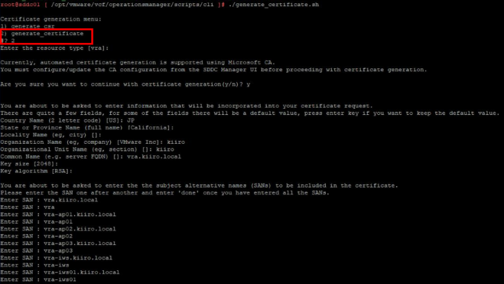 DNS 레코드를 작성한 vRA 관련 호스트명을 SAN(서브젝트 별명)으로 한 인증서를 작성합니다. 인증 기관은 Microsoft의 Enterprise CA나 SDDC Manager를 이용할 수 있습니다. 여기서는 Enterprise CA를 인증 기관으로 사용하였습니다.