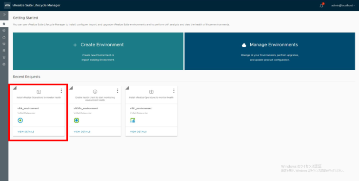 vRSLCM의 「Environment」으로도 정상적으로 인식하고 있는 것을 확인할 수 있습니다.
