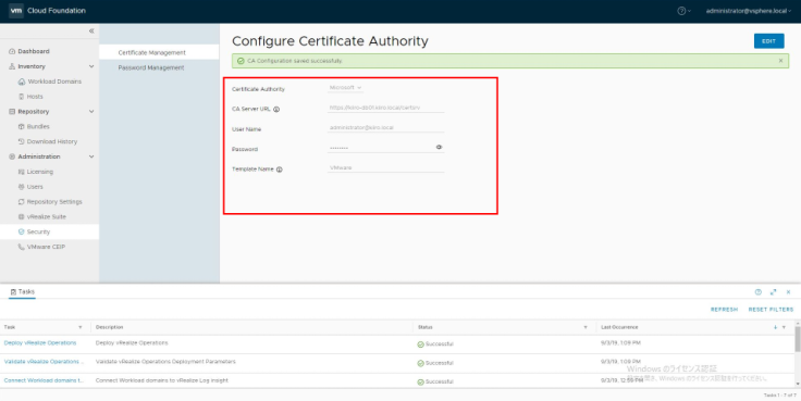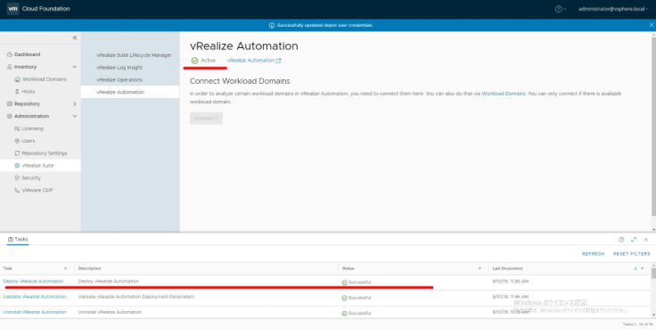 SDDC Manager에서 설치를 실행 후 약 80분 정도로 vRA의 설치가 완료됩니다.