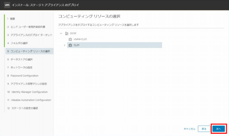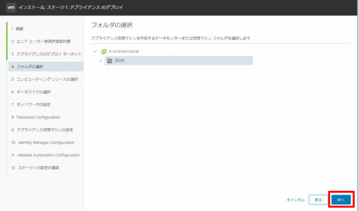 이번에는 설치할 데이터센터, 폴더를 선택합니다.