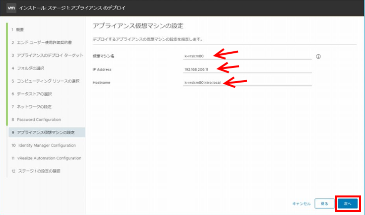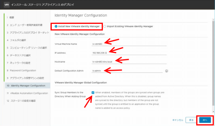 vIDM의 구성을 선택합니다. vIDM도 새롭게 설치할 경우는 가상 머신명, IP 어드레스, 관리자명을 설정하면 됩니다. 기존의 vIDM를 이용할 경우는 기존 정보를 지정하면 되죠.