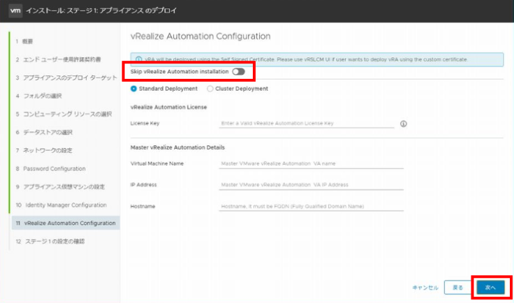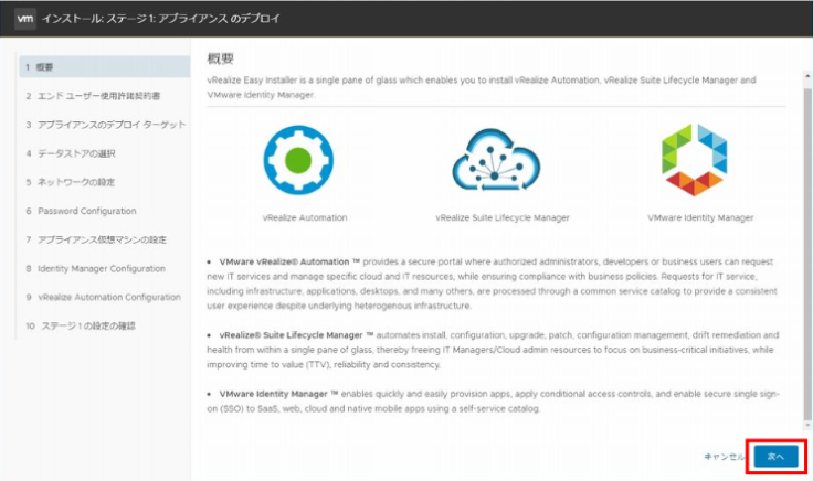 다음에는 vRA입니다. vRA 8.0은 그 이전의 버번의 설치와 비교하면 놀랄 정도로 간단합니다만 vRA는 별도로 설치할 예정이므로 여기서는 선택하지 않겠습니다.