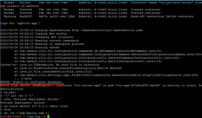 vRA 어플라이언스에 SSH 접속 후 /var/log/deploy.log를 확인해보니 ”Unable to configure database”란 에러로 처리가 멈춘 것을 알 수 있었습니다. 흐음... 구글 선생님에게 물어볼 수밖에 없네요. 에러 코드를 검색해보니, 있었습니다. 관련 KB가...