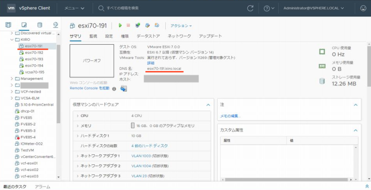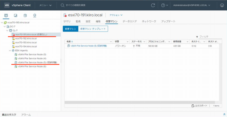 호스트 esxi70-191의 전원을 넣었습니다. 호스트 esxi70-191가 시작되면 자동적으로 FSVM(5)도 자동적으로 시작됩니다.