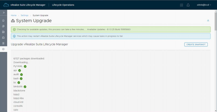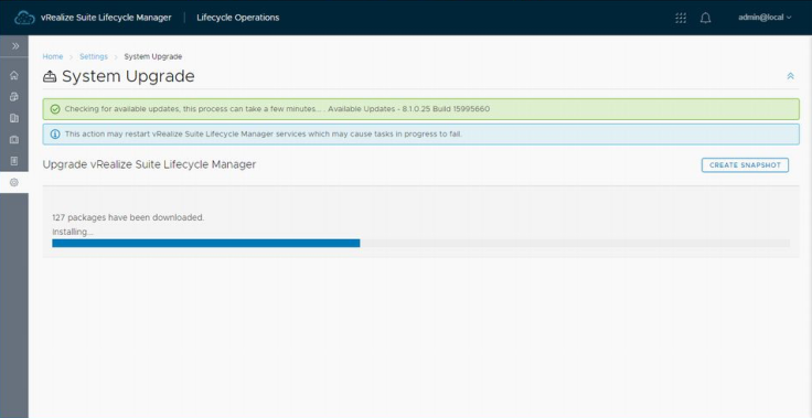 업그레이드를 실행하면 먼저 필요한 패키지를 vRSLCM상에 복사를 합니다.