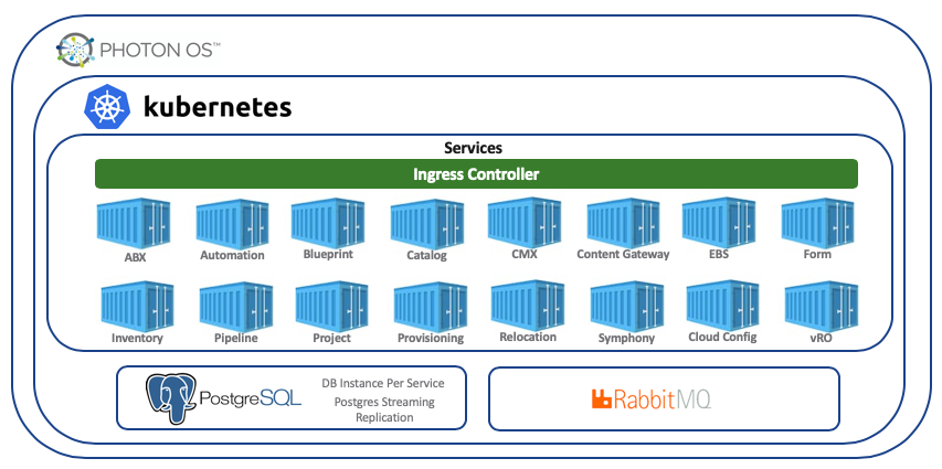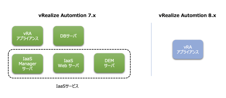 vRA를 구성하는 서비스를 포함하여 모든 서비스는 Kubunetes의 Pods로써 구성되었습니다. 7.x처럼 컴포넌트별로 가상 머신을 준비할 필요가 없어져 하나의 가상 어플라이언스로 집약되었습니다. 탈 Windows를 이루어 더욱 도입하기 쉬워졌습니다.