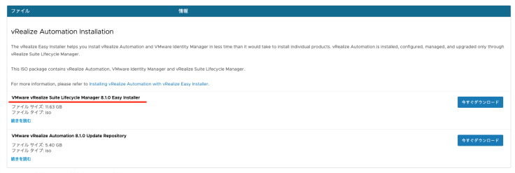 My VMware에서 vRSLCM의 Easy Installer를 다운로드합니다. (이 Easy Installer 이미지에는 vRSLCM 이외에 vIDM, vRA의 가상 어플라이언스의 이미지도 포함되어 있습니다)