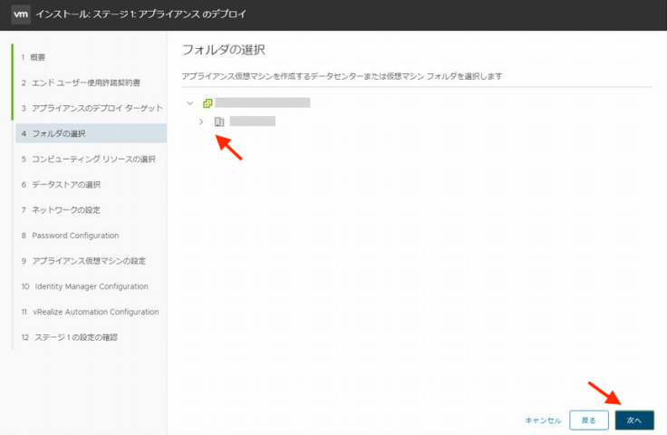 배치할 제품의 폴더를 지정합니다. vRA 배포만으로도 3대의 가상 어플라이언스가 설치되므로 vRealize용 VM 폴더를 만들어둬도 좋을 듯합니다.