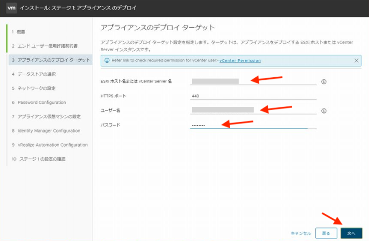 배치할 환경의 정보(vCenter)를 입력합니다.