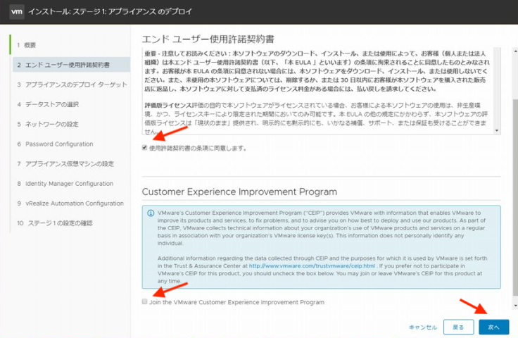 EULA와 CEIP의 옵션을 선택합니다.