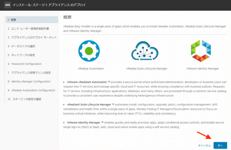 설치 개요 설명처럼 vRSLCM, vIDM, vRA를 동시에 설치할 수 있습니다.