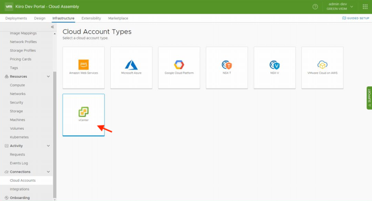 Cloud Account 타입에서 「vCenter」를 선택합니다.