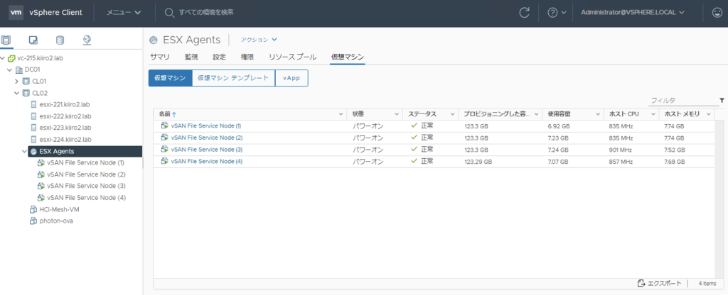 이전에 소개한 vSAN 네이티브 파일 서비스의 FSVM처럼 vSphere ESXi Agent Manager나 전용 vCLS 제어 플레인에 의해 관리됩니다. FSVM과 다른 점이라면 vSphere HA나 vMotion의 대상으로 이동이 가능한 점과 ”호스트와 클러스터” 인벤토리에는 표시되지 않는 점입니다.(”가상 머신과 템플릿”의 ”vCLS” 폴더에서는 확인을 할 수 있습니다)에이전트 VM은 시스템 VM으로 취급되기 때문에 백업이나 스냅숏 작성도 필요 없습니다.