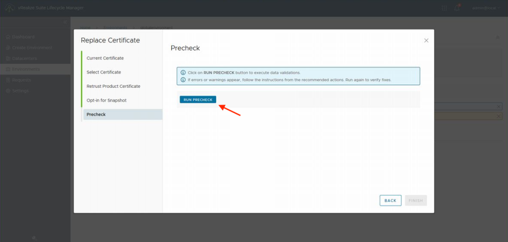 이번에는 vRA입니다. vIDM과 동일하게 먼저 인벤토리의 동기를 실시 후 업데이트할 인증서를 선택 → 「PRECHECK」를 걸쳐 인증서를 업데이트합니다. 20분 정도 걸렸습니다