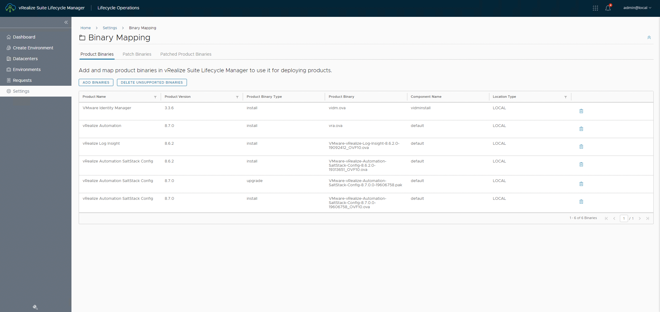 설치한 vRealize Suite 제품의 업그레이드는 간단합니다. 업그레이드용 바이너리 파일을 vRSLCM에 맵핑하여 업그레이드를 실행하기만 하면 됩니다. vRSLCM이 VMware Customer Connect 에 접근이 가능하다면 원스텝으로 바이너리 파일의 맵핑을 실행할 수 있습니다. 인터넷 접근이 안 되거나VMware Customer Connect 접근에 필요한 로그인 정보를 설정할 수 없을 경우는 수동으로 바이너리 파일을 다운로드하여 vRSLCM에 업로드 후 맵핑을 실행하면 됩니다.